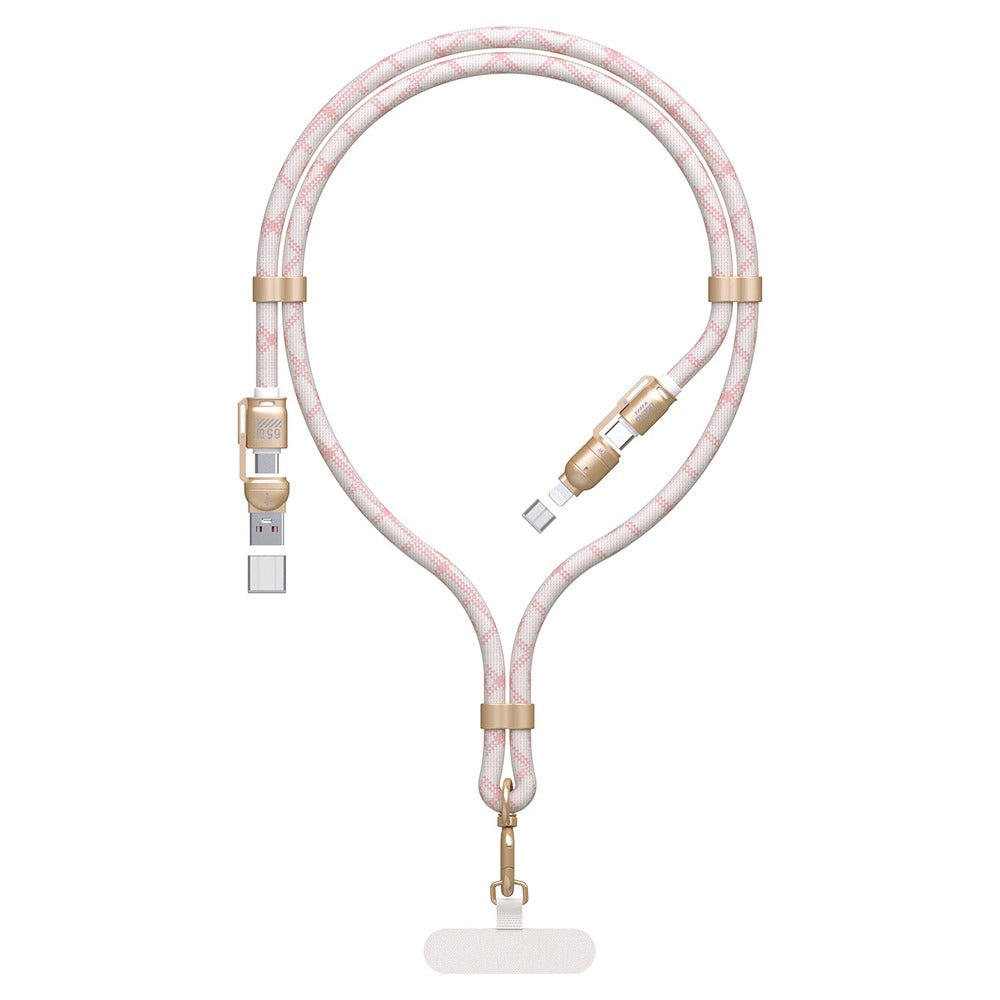 Dudao L20MAX 4in1 kabel / lanyard USB-A / USB-C / Lightning PD QC 65W 1,5 m - Roze telefoonkoord