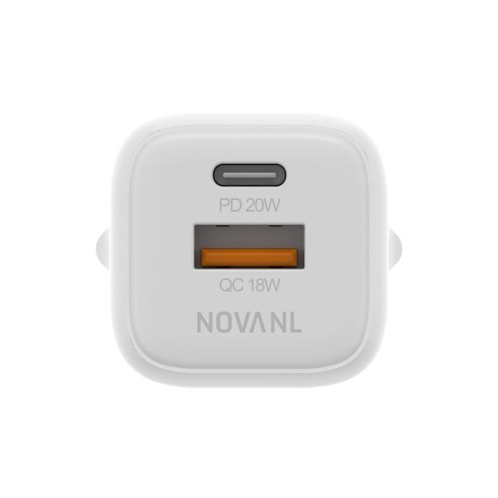 NOVANL GaNCharge 20W Dual Port (USB-A & USB-C) Wall Charger White
