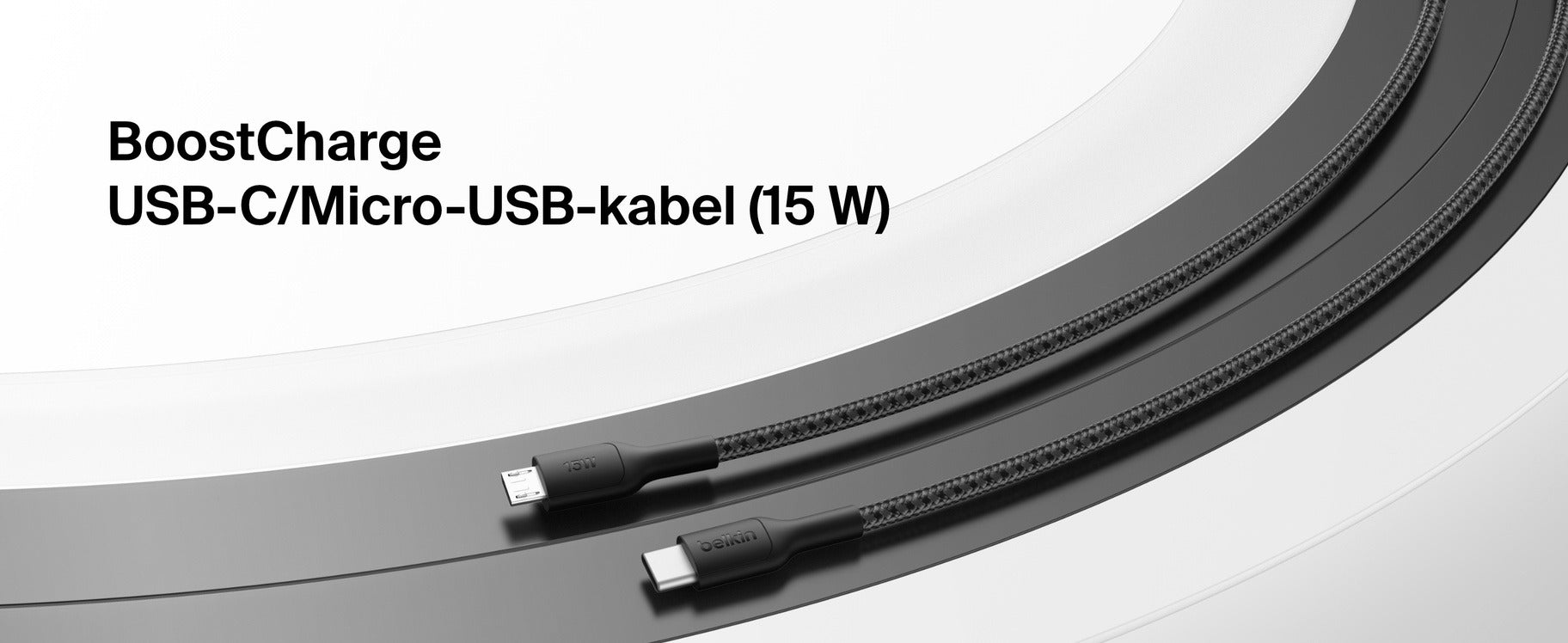 Gevlochten USB-C/Micro-USB-kabel (1 m, zwart)
