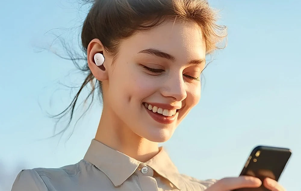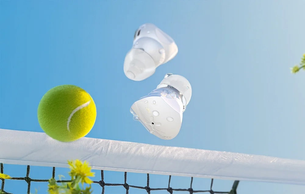 Het lichtgewicht ontwerp en compacte formaat van de hoofdtelefoon zorgen voor comfort, de hele dag door. Eén oordopje weegt slechts 3,5 gram en er worden drie paar siliconenrubberen bandjes in verschillende maten (S, M, L) meegeleverd, voor een perfecte pasvorm in elk oor.
